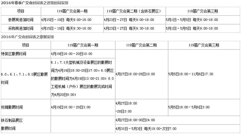 2016春季第119屆廣交會(huì)時(shí)間表之展出安排